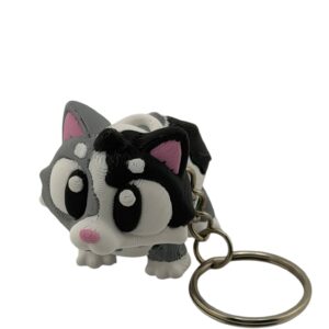Produkt został wykonany w technologii druku 3D, dzięki czemu wyróżnia się ciekawą formą oraz dokładnym odwzorowaniem szczegółów. Metalowe kółko umożliwia wygodne przypięcie do kluczy, plecaka, torby lub piórnika. To doskonała propozycja dla osób, które kochają psy i chcą mieć przy sobie wyjątkowy dodatek inspirowany jedną z najbardziej rozpoznawalnych i uroczych ras.