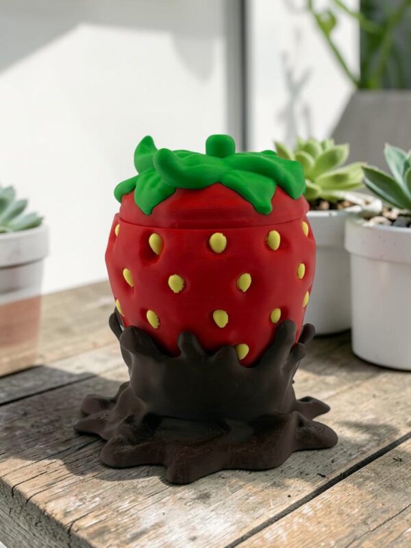 Uroczy truskawkowy pojemnik z mini truskaweczkami to wyjątkowa propozycja dla miłośników słodkich dekoracji, bajkowych dodatków i oryginalnych produktów wykonanych metodą druku 3D. Zestaw przyciąga uwagę intensywną kolorystyką, dopracowanymi detalami oraz wyjątkową formą, która łączy funkcję dekoracyjną z praktycznym zastosowaniem.