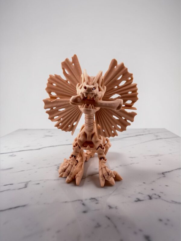 Wyjątkowy model dekoracyjny inspirowany prehistorycznym światem to oryginalna propozycja dla miłośników dinozaurów, fantastycznych stworzeń oraz nowoczesnych wydruków 3D. Produkt przyciąga uwagę efektowną sylwetką, starannie dopracowanymi detalami oraz charakterystycznym kołnierzem wokół głowy, który nadaje mu wyjątkowy i drapieżny wygląd. Całość utrzymana jest w jednolitej, jasnej kolorystyce, dzięki czemu model prezentuje się estetycznie, nowocześnie i bardzo dekoracyjnie.