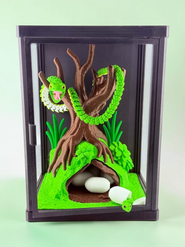 Leśne terrarium z wężem i jajkami – dekoracyjny wydruk 3D z ukrytymi małymi wężami