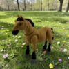 Całość utrzymana jest w harmonijnym połączeniu ciepłego, jasnobrązowego odcienia z ciemniejszymi akcentami na pysku, grzywie, nogach i ogonie, co nadaje figurze elegancki, a jednocześnie nowoczesny charakter. Dzięki ruchomej konstrukcji model zyskuje dodatkową lekkość wizualną i dynamiczny wygląd, co jeszcze bardziej podkreśla jego dekoracyjny oraz kolekcjonerski styl.